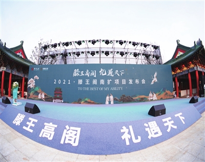 近日,“滕王高阁,礼遇天下”2021·滕王阁南扩项目发布会在南扩项目王勃广场举行。作为南昌市十大文化重点工程之首的滕王阁南扩项目,既是南昌市政府推动南昌城市旅游发展的重要实践,也是进一步“实现城市创新活力和文化魅力,打造文化旅游融合发展新格局”的重要举措。