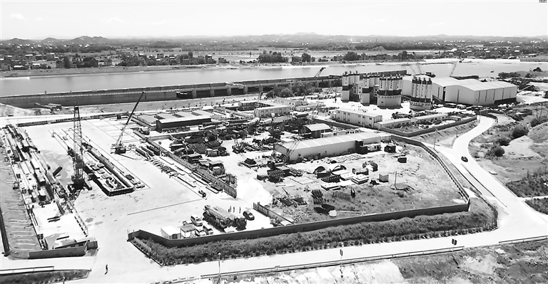 7月21日,在信江航运枢纽项目现场,工人冒着高温施工。入伏以来,信江航电项目部采取错时施工,在保障一线施工人员健康安全同时,确保又好又快地推进重点工程项目建设。通讯员 韩海建摄