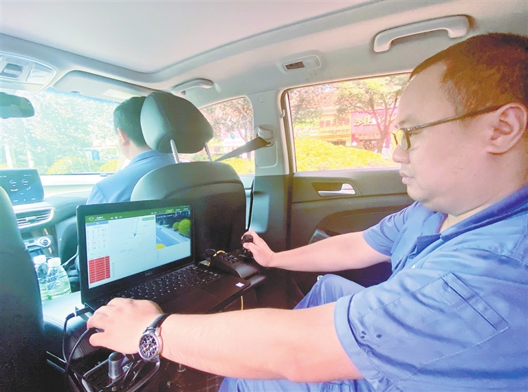 巡查车行至高新大道时,操作平台的警报声再次响起,王晶和任锴紧急停下车,掏出分析仪进一步分析,结果证实这里出现漏气点。两个人立即通知燃气抢修人员赶到现场处置。王晶告诉记者,跟随GPS的线网图,用巡查车和激光枪检测天然气管道的漏点,收到报警后,下车用乙烷分析仪排除沼气的可能性,再细查浓度最高的点——这就是激光“听诊”的全过程,大大提高了管网巡查效率和安全供气系数。