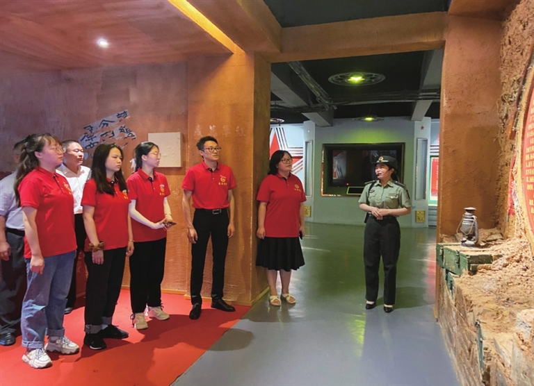 日前,南昌师范学院马克思主义学院思政课教师和思想政治教育专业学生,组成5支“青马学堂”服务队分赴武汉、寻乌、于都、瑞金、安源等地开展“一线课堂”“红色走读”和暑期“三下乡”社会实践活动。图为学校师生代表参观高虎脑革命烈士纪念馆。(卞良栩)