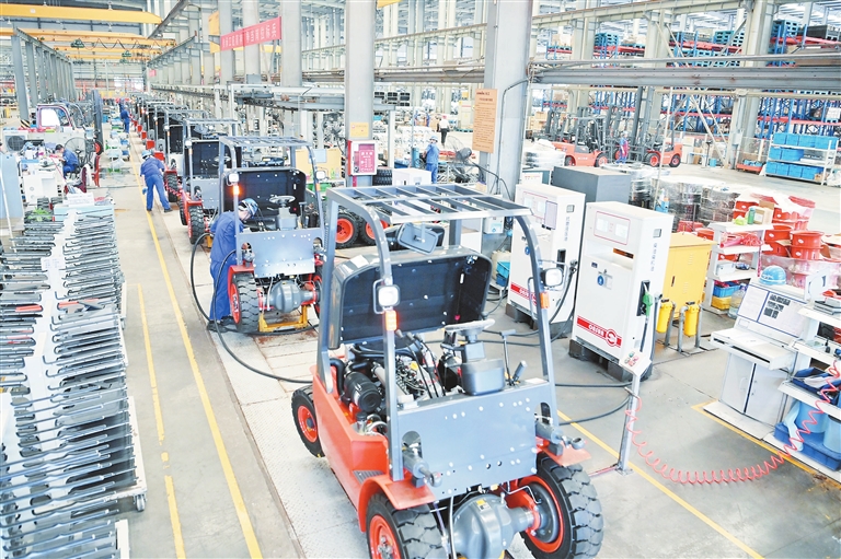 7月22日,在高安市龙工叉车有限公司,叉车源源不断下线。近年来,该企业在科技部门的引导下,加大研发投入,开展科技创新,完成了从做零部件到部件总成再到整机叉车产品升级。1至5月份,企业完成含税产值10.66亿元,同比增长50.36%。