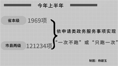 围绕企业办事“少跑”或“不跑”,全省“放管服”改革再提速。今年上半年,省本级1969项依申请类政务服务事项实现“一次不跑”或“只跑一次”,占依申请类政务服务事项总数的95.3%;市县两级121234项依申请类政务服务事项实现“一次不跑”或“只跑一次”,市级占比达90%,县级占比达86%。各级政务服务实体大厅实现规范运行,高频简单服务向村、社区及邮政、金融机构网点拓展延伸,基本实现“小事不出村、大事不出乡、难事不出县”。我省还编制完成标准化政务服务事项和全省统一行政权力清单,行政审批效能和政务服务质量不断提升。