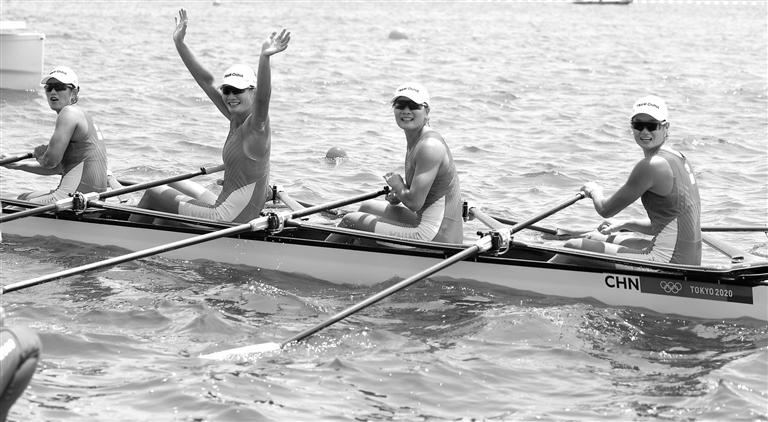 当日,在东京奥运会赛艇项目女子四人双桨决赛中,中国队夺得冠军。
