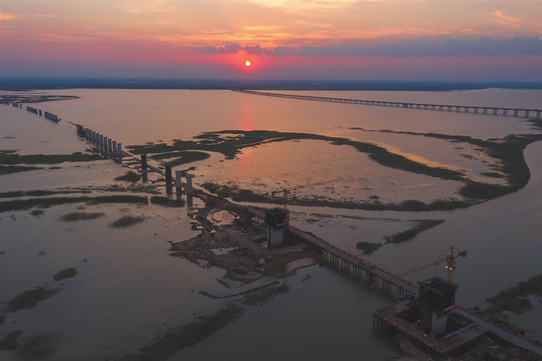 全长4019.6米的金溪湖特大桥,是昌景黄高铁最重要的控制点之一,横跨抚河主航道,地质情况复杂,施工难度大。