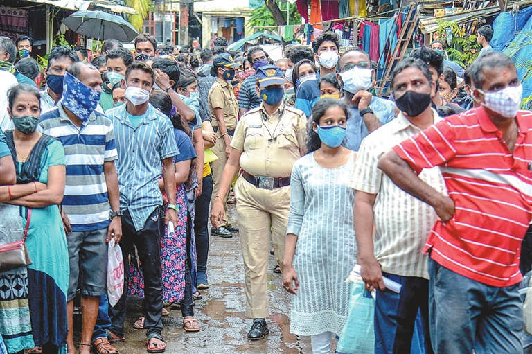 8月2日,人们在印度孟买排队等待接种新冠疫苗。印度一些专家认为,印度可能暴发新一波新冠疫情。印度理工学院研究人员运用数学模型预测,新一波疫情最快或于本月暴发,10月达到峰值。 新华社/法新