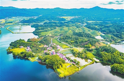8月5日,航拍下的新余市仙女湖区九龙山乡泉田村山水相依、产业集聚、道路通畅。近年来,九龙山乡严守生态保护底线,培育以特色种植、休闲田园、绿色采摘、红色文化旅游等为主题的文旅融合发展项目,助力乡村振兴和农民增收致富。