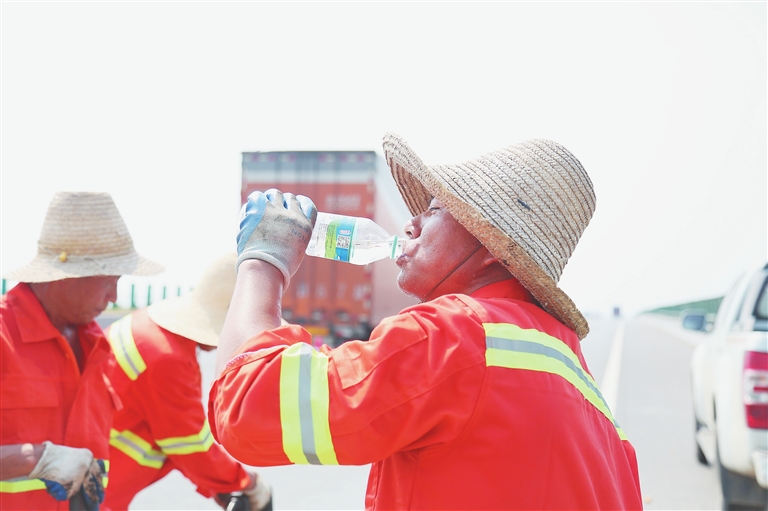 经受双重“烤”验的养护工
