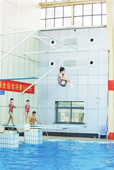 掀开江西跳水队训练馆大门的幕帘,馆内弥漫着消毒水味,映入记者眼帘的是跳板和跳台上翻腾跳跃的运动员们,湛蓝的泳池里不时地溅出几朵漂亮的水花。