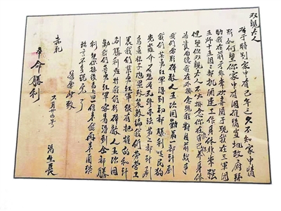 北上无音讯……渐渐地,欧阳洪长寄回的家信,成了全家人的情感牵系和精神慰藉。在欧阳可辉家小小厅堂的柜子上,赫然立着玻璃框装的四封书信复印件,三封是欧阳洪长在1934年2月、8月、9月写给叔父的信,一封是叔父写给他却被退回的复信。