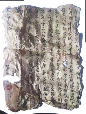 对于时别家中有己(两)年之久,不知家中情形如何?望你家中有困难情(请)当地政府帮助。我在前方非常欢喜,关于现我在三军团五师十五团团部机关连工作,身体非常强健,望你双亲大人不必挂念。你在家自己保养身体为贵,面德(免得)我在外挂念。现我对目前战争,我们要粉碎敌人五次“围剿”。第一部(步)计划,我们英勇红军得到初部(步)胜利,国民狗党蒋介石想整死没办法。第二部(步)计划乌龟壳子炮垒政策,欺骗我们劳苦工农。我们英勇红军很有把握的和计划胜利归于我们……我们英勇红军容易得到全部胜利……
