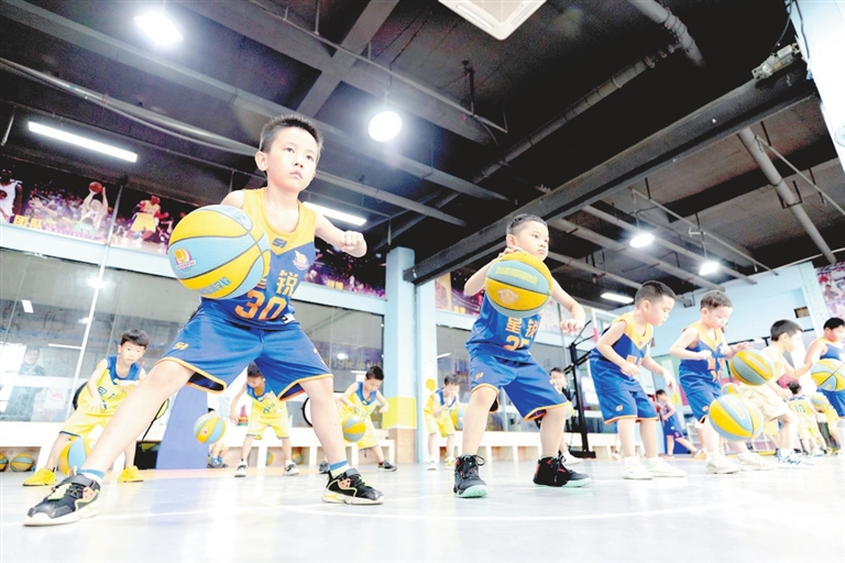 暑期开始以来,庐山市充分调动各种社会资源,推出了一系列缤纷多彩的活动,让广大青少年度过一个多彩假期。图为8月9日,孩子们在教练的指导下学习打篮球。