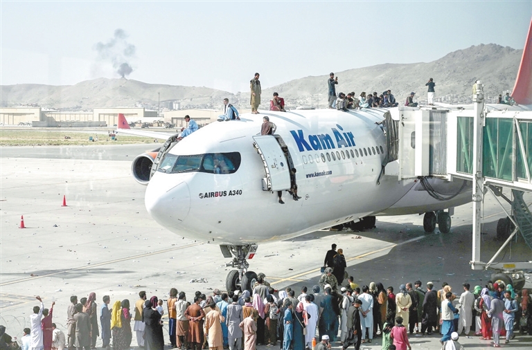 16日上午,大量民众涌入喀布尔国际机场,机场因此停止运行。机场附近居民告诉新华社记者,机场16日晚开始有飞机起飞,这些飞机并非商业航班,都是外国撤侨的飞机。