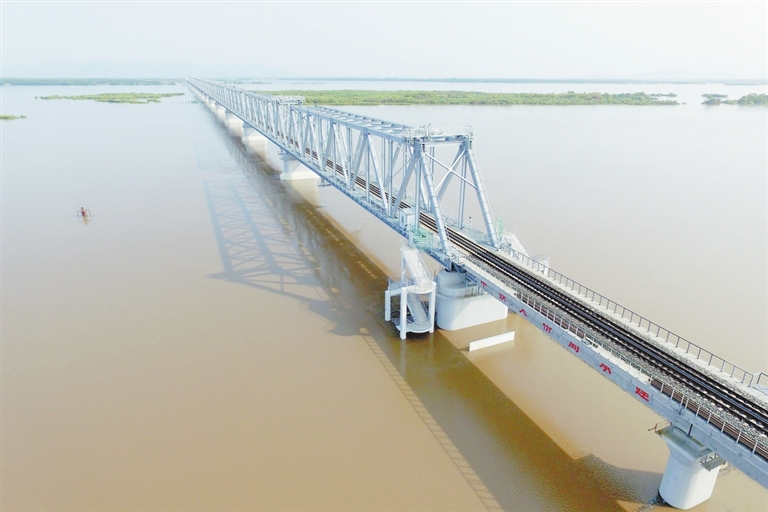 中俄首座跨江铁路大桥铺轨贯通