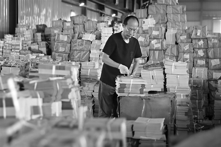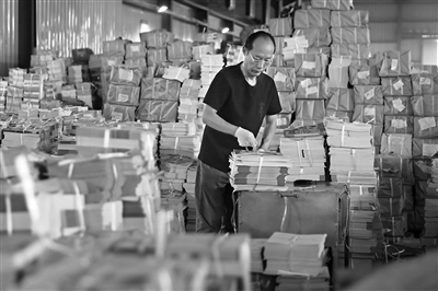 8月21日,在安徽省淮北市新华书店教材仓库内,工作人员在分类整理新学期教材。新学期临近,安徽淮北新华书店抓紧做好全市中小学教材的调运、整理和发送工作,确保学生新学期及时领到新教材。 新华社发 (万善朝摄)