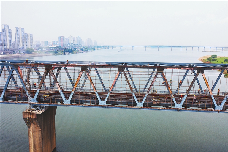 据樟树大桥施工负责人万君介绍,樟树大桥已达10年大修周期,此次全面涂装大修升级作业预计9月份完工,将完成大桥涂装38500平方米。