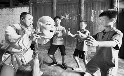 8月17日,抚州市东乡区小璜镇孙圳村,非遗传承人孙发生正在给孩子们演示罗汉灯的表演动作。暑假期间,孙发生利用业余时间,给村里的孩子们义务讲解罗汉灯的历史传承,让孩子们在家门口学习非遗技艺。