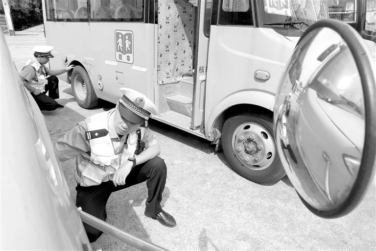 8月24日,兴国县公安局交管大队埠头中队民警对辖区内的校车进行安全检查。开学在即,兴国县公安局交管大队组织开展校车安全专项检查,及时排除安全隐患,确保学生乘车安全。 特约通讯员 陈 鹏摄