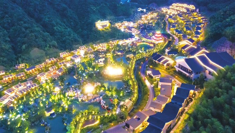 昔日偏远的铅山县葛仙村,如今因生态旅游而大放异彩。图为夜幕下流光溢彩的场景。本报首席记者 杨继红摄