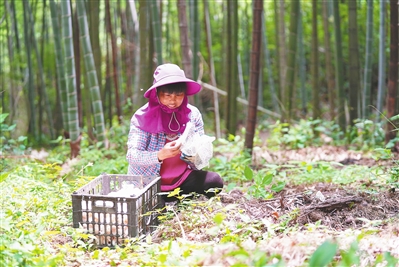 根据林业专家提出在山地里开沟,增强土壤蓄水能力的科学方法,示范林里的竹荪产量比去年增长了约60%。据江西省与杉同寿实业发展有限公司总经理温敏学介绍,今年干竹荪、干菌帽、新鲜竹荪蛋产量均约2吨,预计收益超过300万元。在原材料发酵、采摘、烘干和包装等环节,能够提供50余个就业岗位。