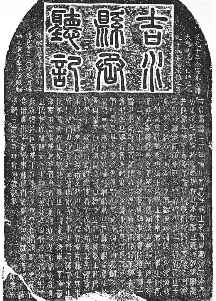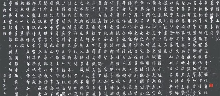 尤其值得一提的是,不少江西本地刻石拓片一并展出,如宋代彭汝砺撰文、苏辙所书的《彭素墓志》,宋代谢逸撰并书的《彭夫人墓志》,宋代汪应辰撰文、汪涓书篆体部分的《吉水县丞厅记》,清代熊枚撰文、翁方纲所书的《重修铅山县学记》等。彭汝砺为北宋治平二年状元,鄱阳人;谢逸,北宋临川人,文学家,与其徒弟谢迈并称“临川二谢”,与饶节、汪革、谢迈并称为“江西诗派临川四才子”;汪应辰为南宋绍兴五年状元,玉山人;汪涓为南宋进士,与弟汪应辰并称“二汪”;熊枚,铅山人,清代乾隆三十六年进士,累官至直隶总督、授刑部尚书。唐宋八大家之一的苏辙,其书法字迹罕见,因而《彭素墓志》拓片尤为珍贵。这些展出的江西刻石拓片,彰显江西深厚的历史文化底蕴,具有重要的文史价值和书法研究价值。