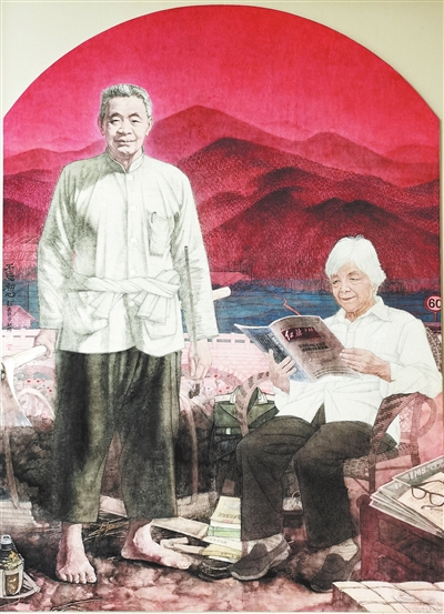 笔者创作这幅作品,得从2017年采访龚全珍老阿姨说起。那年夏天,笔者随省中国画学会前往莲花县采风写生,和其他几位画家一起,采访了全国道德模范龚全珍。在给她画像时,她滔滔不绝地给我们讲起了与老伴甘祖昌将军的军旅生涯及回乡务农的经历。当时,笔者萌生了以这对毕生奉献老夫妻的故事为素材进行创作的念头。次年,笔者再次专程到龚全珍家,掌握了许多创作的素材,翻阅了许多相关资料,再一次为夫妻俩感人的事迹所感动。