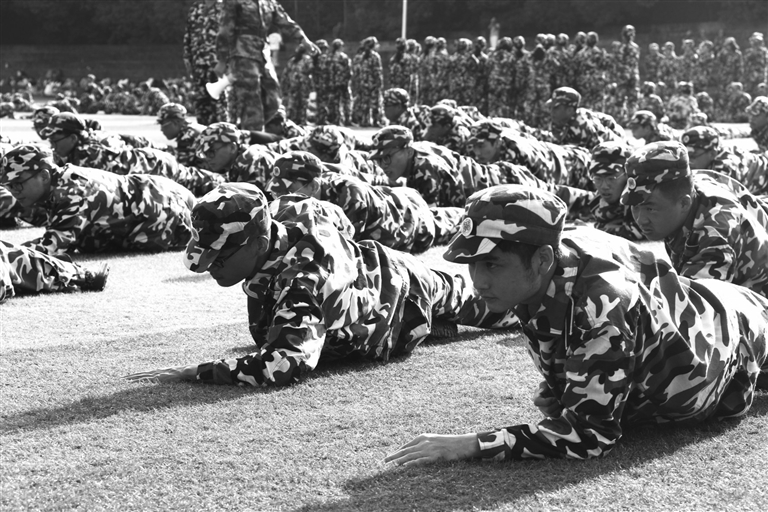 口号嘹亮,军歌飞扬。新学期伊始,南昌大学举行2021级新生军训,绷直的腿、挺直的背,拳、掌、钩、爪,一拳一式一丝不苟、匍匐卧倒整齐划一,广大青年学子用行动践行“请党放心,强国有我”的铮铮誓言。姜毅俊摄