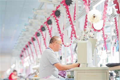 近年来,邮储银行庐山市支行积极搭建服务企业的金融平台,通过源源不断注入金融“活水”,有效保障了企业发展的资金流,提升了“产业链”竞争力。据了解,该企业生产的户外运动服装全部销往欧美市场,目前生产订单已排到12月份,预计全年产值较去年增长30%。图为江西呼动服饰有限公司工人正忙着赶制外贸订单。韩俊烜摄
