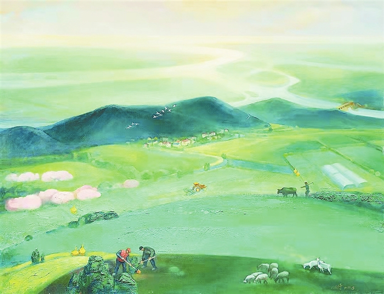 油画 《山江湖工程》 周克修绘
