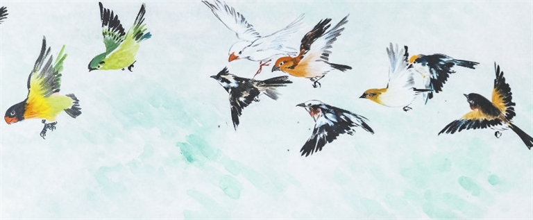 国画 《百鸟鸣盛世》(10米长卷局部) 陈 立绘