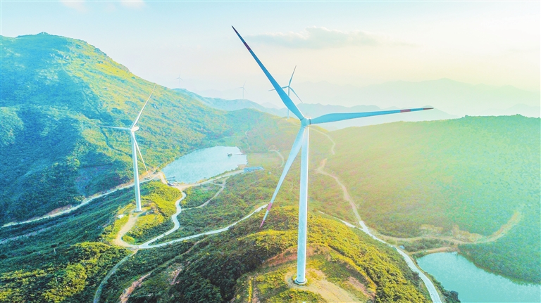丰城市荷湖乡玉华山风电场,风力发电机正在有序运转,不断输送清洁能源。