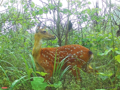 “样线法是业内普遍采用的调查方法。通过统计学方法,我们得出华南梅花鹿种群密度为4.99头/平方公里,乘以保护区面积,估计出种群数量为624头。”李言阔称,今年初他们安装了100台红外相机,拍摄照片11720张,视频3380段,经去重处理获得有效照片1115张。照片显示种群主要分布在保护区的核心区,雌雄比约为10∶1,每天17时至次日7时活动频繁。