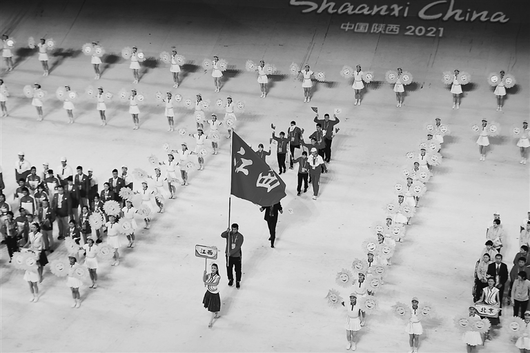 10月22日晚,全国第十一届残疾人运动会暨第八届特殊奥林匹克运动会在陕西西安开幕。图为江西代表团入场。