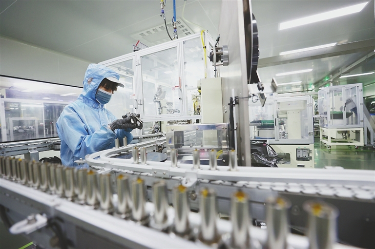 10月18日,宜春经开区江西远东电池有限公司员工正在生产锂电池。近年来,宜春市将锂电新能源产业作为首位产业来推进,形成从锂矿开采、锂电池及其关键材料制造到锂电池在动力、储能及消费领域应用的全产业链发展模式。吴文兵摄