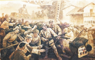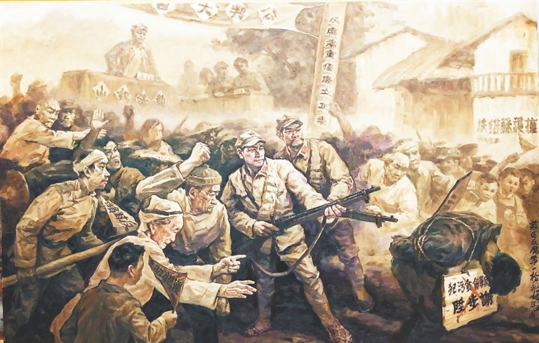 | 油画 《苏区反腐第一枪》 刘世群绘 |