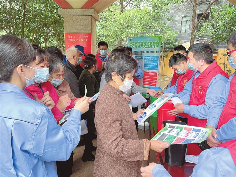 近日,江西五十铃发动机有限公司组织志愿者来到南昌县八月湖路社区,开展垃圾分类主题宣传活动。志愿者发放宣传单,讲解分类方法,现场指导居民如何进行垃圾分类。通讯员 陈 柘摄