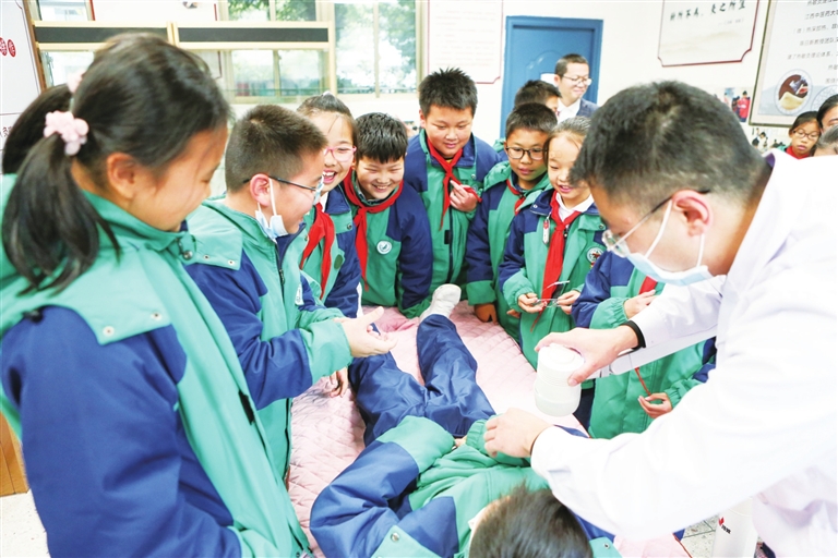 “冬吃萝卜夏吃姜,不劳医生开处方”“早上喝盐汤,胜喝人参汤”……11月11日,一堂中医食养课在南昌市红谷滩区碟子湖学校中医药文化馆进行,江西中医药大学校长朱卫丰等专家、教授为小学生授课,普及中医食养常识。杨清跃摄
