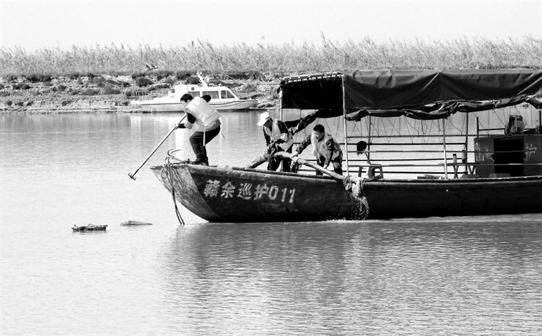 11月16日,在鄱阳湖余干县康山乡段,湖区管理员正在清理湖内的漂浮物。近年来,该县进一步压实各级河湖长责任,坚持河湖同治、水陆共治,加大船舶污染物收集处理力度和湖岸垃圾整治,确保鄱阳湖水清岸美。 本报记者 吕玉玺摄