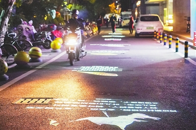 11月23日拍摄的“诗歌单行道”。在上海市杨浦区四平路1028弄,由于不属于市政干道,这里有一条没有路名也没有路灯的道路。今年10月,作为2021上海城市空间艺术季项目之一的“诗歌单行道”在四平路1028弄点亮,长短不一的诗歌通过灯光投影在地面,点亮了居民的回家路。据了解,单行道投影灯每天下午5时亮灯,熄灯时间定在凌晨1时,诗歌内容定期更换,都是由本地居民创作。 新华社记者 王 翔摄