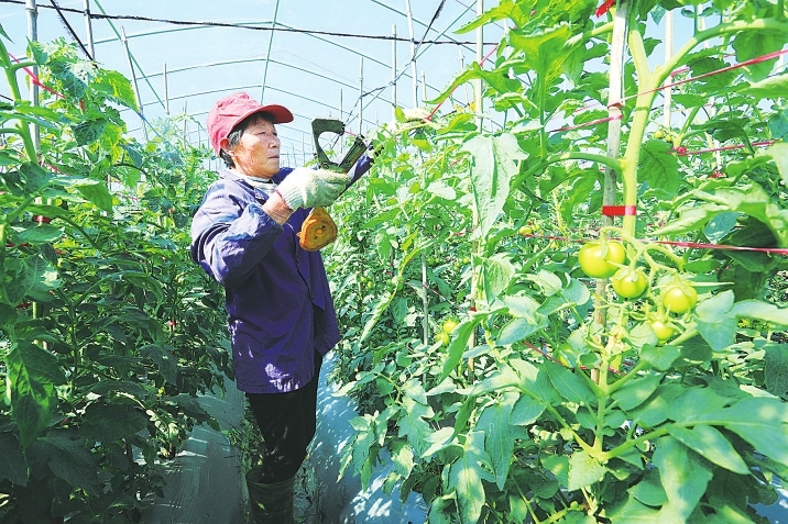 平整的田块上,流坊村西红柿种植基地的大棚一眼望不到边。大棚内,西红柿已有小孩拳头大小,即将丰收上市。正在忙着绑枝固定的村民黄求章告诉笔者,大棚是村集体和由村集体引进的一家公司共同兴建的,他承租了30个大棚,肥料、苗种、技术由公司提供,除去成本,每个大棚的收入预计可超过1万元,如果没有村集体经济的“孵化”,自己想都不敢想能参与到西红柿的种植。