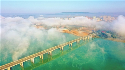 12月3日,319国道泰和赣江大桥,白云飘飘,碧水悠悠,与川流不息的车辆相映成景。近年来,泰和县坚持交通先行,四通八达的交通路网助力乡村振兴。特约通讯员 邓和平摄