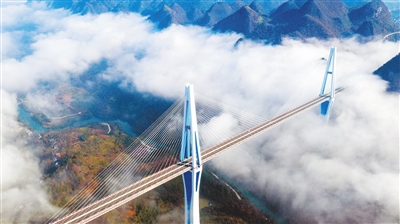 图为11月25日拍摄的贵州平塘特大桥。作为中国唯一没有平原支撑的省份,贵州在喀斯特高原架起2万余座桥梁,在群山峻岭间建出“高速平原”。贵州的桥梁数量多、类型全、技术复杂、施工难度极大,创造了数十项“世界第一”。覆盖梁桥、拱桥、悬索桥、斜拉桥等,几乎包揽了当今全部桥型,是名副其实的“桥梁博物馆”。世界高桥前100名中,40余座在贵州。从海拔500多米的赤水河谷,到海拔2000多米的乌蒙高原,一座座架设在高山峡谷间的世界级大桥,让天堑变通途。