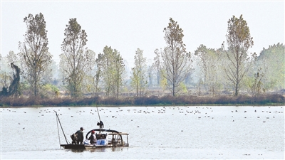 近日,余干县万亩芡实基地内,员工们正在驾船收取水中的芡实果。该县曾被授予“中国芡实之乡”称号,今年芡实种植面积超10万亩。