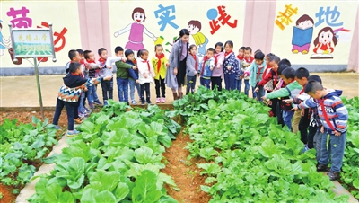 莲花县花塘小学在校园里开辟劳动教育实践基地,由老师带领学生在基地开展劳动教育,让学生享受劳动的意义和快乐。 李铁梅摄