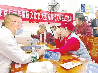 12月15日,赣州市首届老年健康文化节大型新时代文明实践活动举行。当天上午,赣州市第三人民医院组织心理科、内科、外科、中医科、老年科、睡眠科、口腔科等科室的专家和护理人员走进老年公馆提供义诊和心理健康服务。