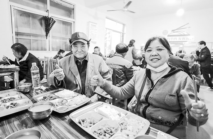 图② 老人们在安源区丹江街道江矿社区“爱心食堂”享用午餐。