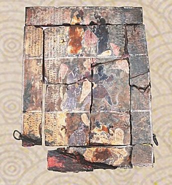 西汉人在榻上会友交谈,屏风就立在榻旁。刘贺在榻上可以天天与孔子及弟子“见面”,时时照镜子正衣冠。这幅孔子像,是目前我们看到的最早的孔子画像,也是当时正统、权威的孔子标准像。