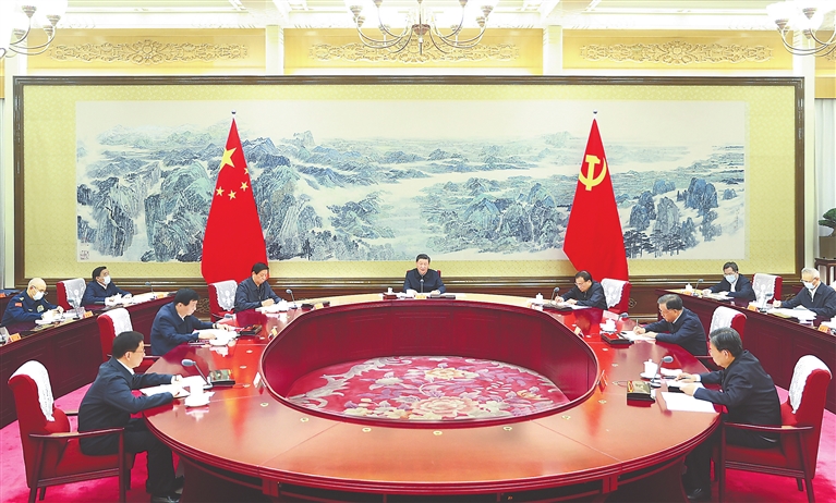 会议强调,今年是党和国家历史上具有里程碑意义的一年。一年来,以习近平同志为核心的党中央团结带领全党全国各族人民,隆重庆祝中国共产党成立一百周年,胜利召开党的十九届六中全会、制定党的第三个历史决议,开展党史学习教育,如期打赢脱贫攻坚战,如期全面建成小康社会、实现第一个百年奋斗目标,开启全面建设社会主义现代化国家、向第二个百年奋斗目标进军新征程。一年来,世界百年未有之大变局和新冠肺炎疫情全球大流行交织影响,国内疫情防控和经济社会发展各项任务极为繁重艰巨,全党全国坚持以习近平新时代中国特色社会主义思想为指导,全面贯彻党的十九大和十九届历次全会精神,统筹国内国际两个大局,统筹疫情防控和经济社会发展,统筹发展和安全,统筹推进“五位一体”总体布局、协调推进“四个全面”战略布局,构建新发展格局迈出新步伐,高质量发展取得新成效,国家战略科技力量加快壮大,改革开放全面深化,民生保障有力有效,生态文明建设持续推进,社会大局保持稳定,国防和军队现代化建设加快推进,战胜多种严重自然灾害,灾后恢复重建扎实有力,我国经济发展和疫情防控保持全球领先地位,党和国家各项事业取得新的重大成就,“十四五”实现良好开局。