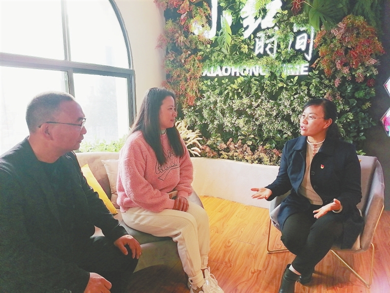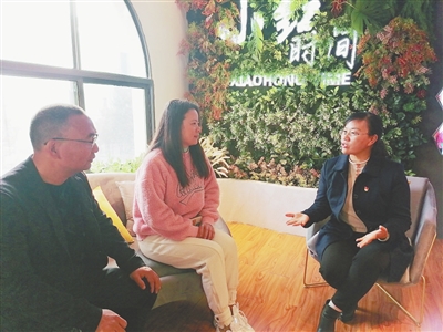 今年以来,新余市渝水区仙来办龙州社区创新打造“城市会客厅“平台,设立以社区党支书简小红名字命名的“小红时间”,有效解决老百姓身边的急难事、麻烦事、烦心事。图为简小红(图右)正在热情接待群众。 通讯员 易 颖摄