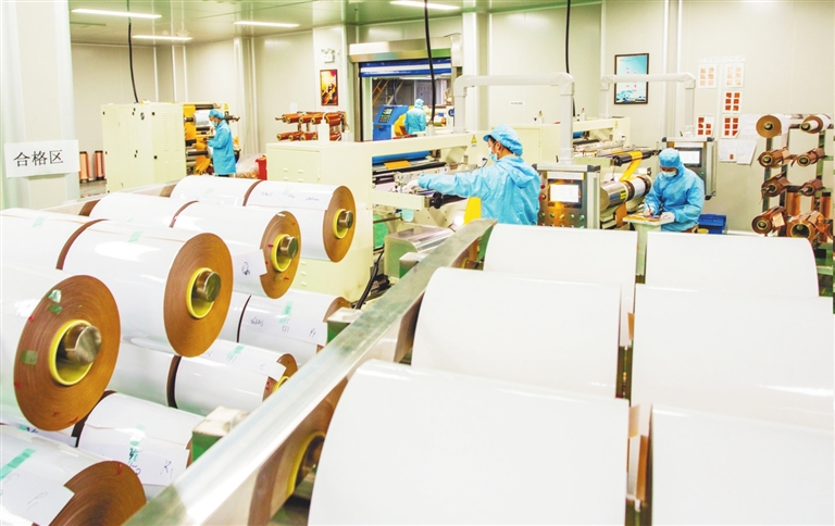 乐安县积极做好各大企业的产供销对接,抢抓“双循环”机遇。当地生产的中高端覆铜板产品广泛用于航空、5G运用等,远销东南亚、欧美国家。图为该县工业园区的江西品升电子有限公司忙碌的生产现场。谭立华摄