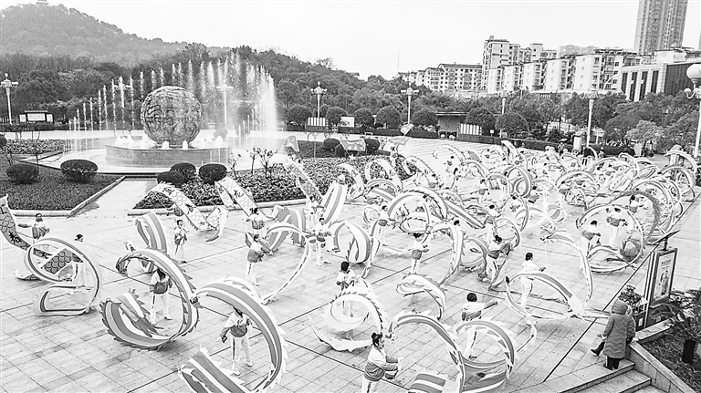 12月28日,宜春市袁州区袁山公园北广场上演精彩的龙舞表演。当日,宜春龙舞队上百名龙舞爱好者舞起彩龙,欢天喜地迎新年。本报记者 邹海斌摄